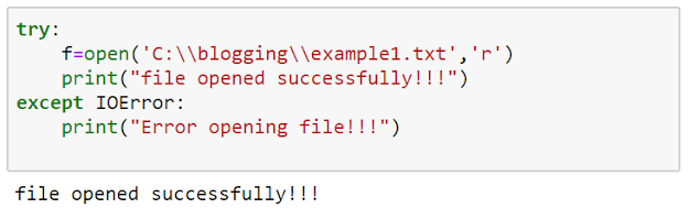 It can effectively handle the exceptions also. Now after correcting this error, the file was opened successfully and then I executed other code snippets for a while and checked whether the file remains open.